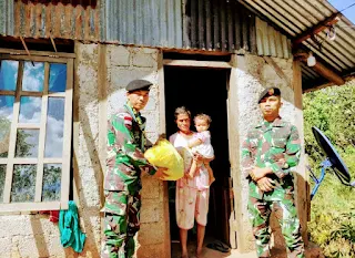 Tsinifu, NTT , SABTANEWS.COM - Berikan bantuan kepada masyarakat, Pos Aplal Satgas Yonkav 6/Naga Karimata berikan bantuan berupa paket sembako kepada masyarakat yang ada di daerah sekitar Desa Tasinifu , Kec. Mutis, Kab.TTU, Prov. NTT. (22/5/2024)