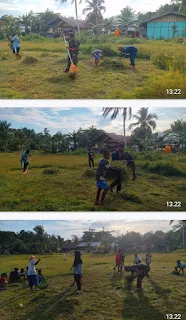 Danpos Teluk Arguni Letda Inf Dimas Bayu yang memimpin karya bakti mengatakan, kegiatan karya bhakti ini dalam rangka menciptakan kampung yang bersih dan nyaman.