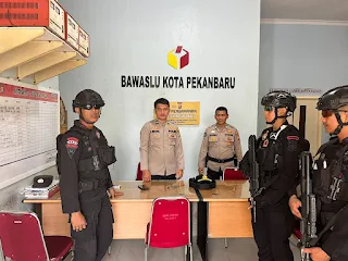 Salah satu kegiatan yang dilakukan adalah patroli memastikan keamanan dan ketertiban tetap kondusif di kantor Bawaslu kota Pekanbaru Kota, Kamis (3/10/2024).