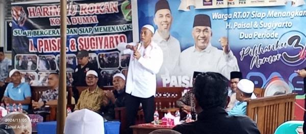 Acara dibuka Khalifah Epi selaku protokol dan dilanjutkan pembacaan Doa oleh Jaber. Sekalian mengajak masyarakat memilih H Paisal. Karena terbukti dimasa kepemimpinan beliau pembangunan Kota Dumai luar biasa pesatnya.